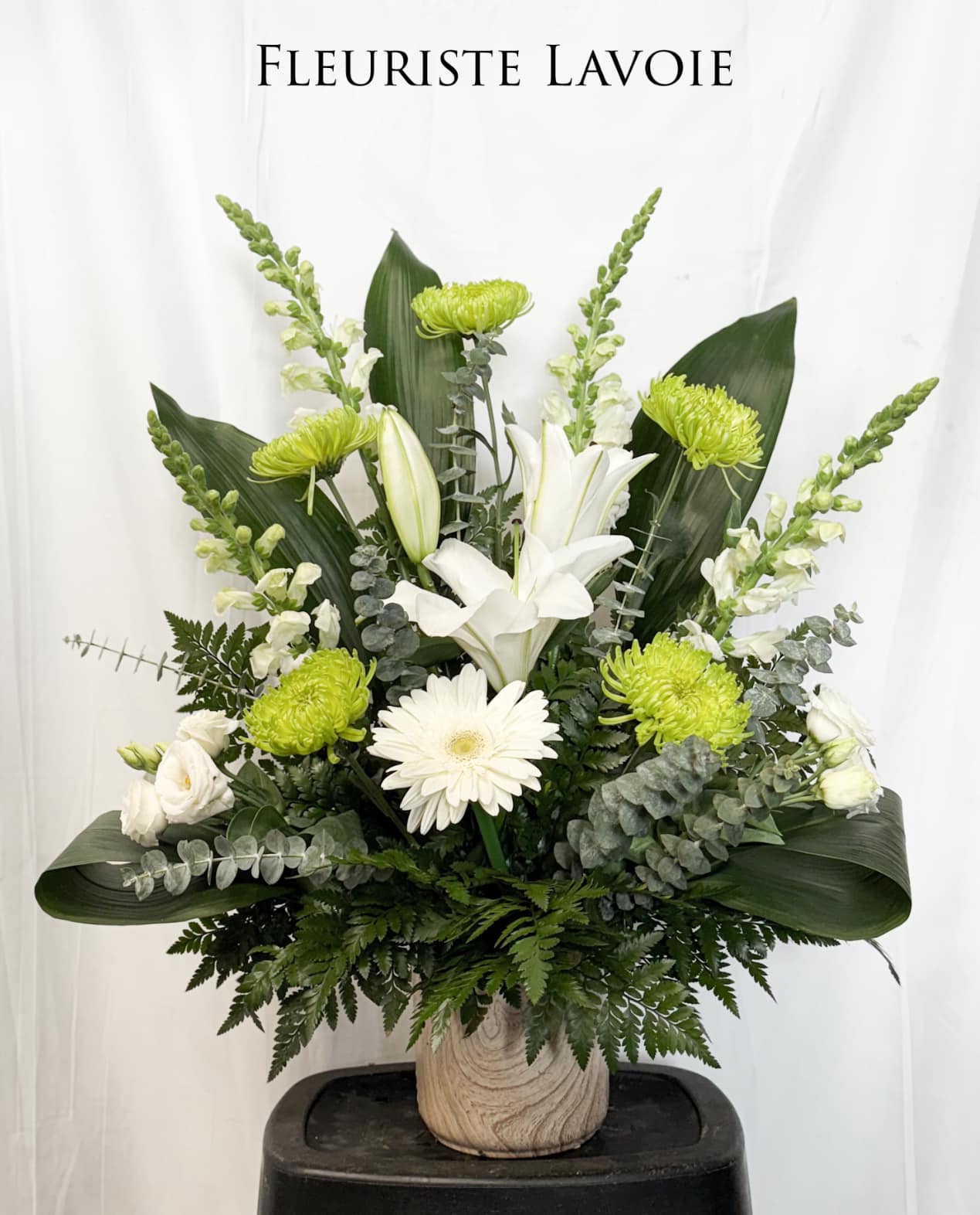 *Notez que vous ne pouvez pas commander en ligne pour l’achat de l’arrangement florale .Vous devez nous appeler au 450-562-1422 pour que l’on puisse valider avec vous si nous avions les fleurs en inventaire pour faire cet arrangement. Il est important de nous contacter le plus tôt possible si vous désirez spécifiquement des sortes de fleurs. Idéalement 7 jours ouvrables.